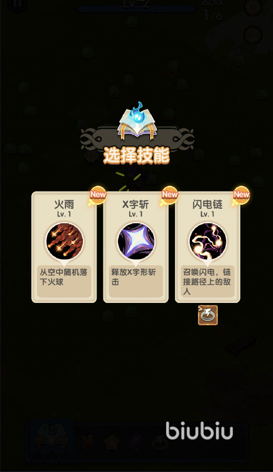 当不断击退敌人后,会出现石头壁画,靠近石头壁画,会出现提升特定技能,通过选择翻牌子的方式成功或失败添加此技能。