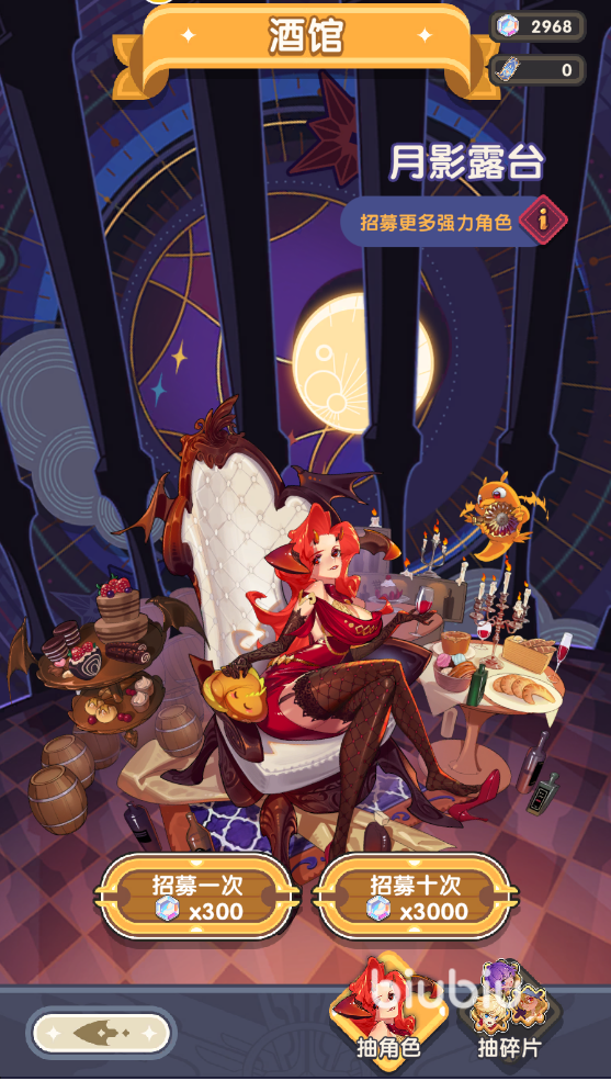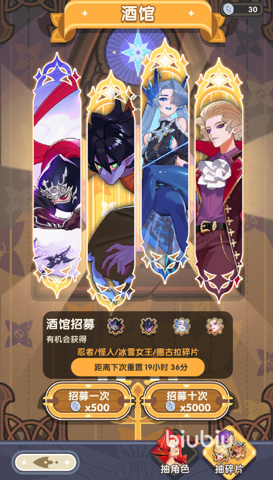 冒险者进入酒馆后可以通过抽角色和抽碎片两种方式招募角色。