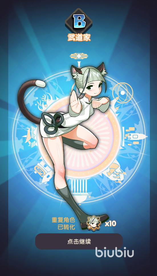 抽角色中包括S级别,A级别,B级别角色。随机招募出的角色等级也会根据概率不同而不同,可以通过消耗抽奖劵道具招募一次角色,也可以通过消耗钻石道具招募10次角色。抽奖劵和钻石可以通过龙鳞商店和日常礼包获得。当重复的角色会自动转化成角色碎片。