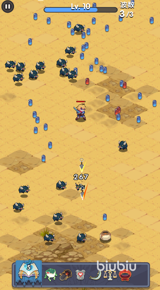 勇者必须选择对技能,才能挑战成功,首选攻击类技能,比如斩击技能,在不断躲闪中击杀周边小怪,免受他们的伤害。在选择技能时,可以选择赠送有些加成的技能,当第一个boss出现时,可以选择不断输出攻击技能和保护自己血量的方式,尽量让他处于持续攻击射程即可。当BOSS被击杀后会掉落宝箱,宝箱要及时捡起,会有意想不到的技能效果。
