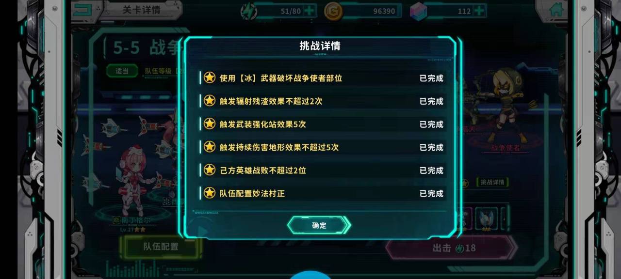完美通关任务一共有六个要求,可以多次通关完成。其中触发辐射残渣不超过两次,需要玩家每个回合及时调整位置,躲避随机刷新的辐射残渣。触发武装强化站效果五次,需要玩家角色站在强化地形五个回合。其他任务比较容易完成,小编就不再一一说明。