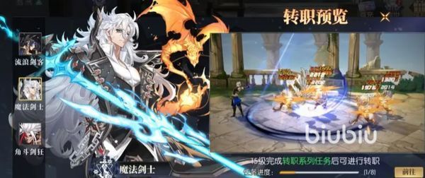魔法剑士:他是由剑斗士转职而来,也是许多新手玩家喜爱的一个角色,他在游戏中具有大量的控制技能,不仅可以使用武器来发挥出冰霜能力或者火焰能力将敌人进行控制,还可以对其造成大额的魔法伤害。