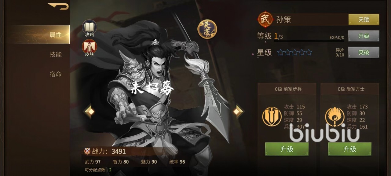 孙策是一个非常耐打的英雄,在对抗敌方五官和全才型将领是有突出表现,最大特点是放到前军拥有极其突出格挡率和攻防属性。当觉醒后在近战回合能伤害对方全体。一个良好肉盾是很多阵容梦寐以求角色,尤其是孙策这样在各个方面都全能人才更是首选。但是有一定的缺陷,自身阵容以吴国为主,很难和其他搭配起来,主要和周瑜、甘宁、太史慈等一起出战。