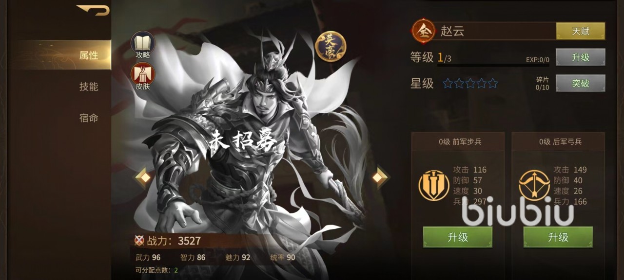 小编推荐大家选择的武将有张辽,孙策,赵云,赵云定位很高,天赋提供了攻防增益,而且可以随着回合数增加逐渐往上堆积。在使用技巧方面可以选择强化远战回合生存能力,在扛过对方输出后,通过近战回合爆发击败对手。擅长率领步兵,每提升一级盾墙技能都能提升麾下步兵攻防属性,还能附加主将技能伤害提升效果。在宿命上与蜀国很多强力角色关羽、张飞,以及群雄中吕布,马云禄等都有羁绊加成,所以在使用上非常自由。
