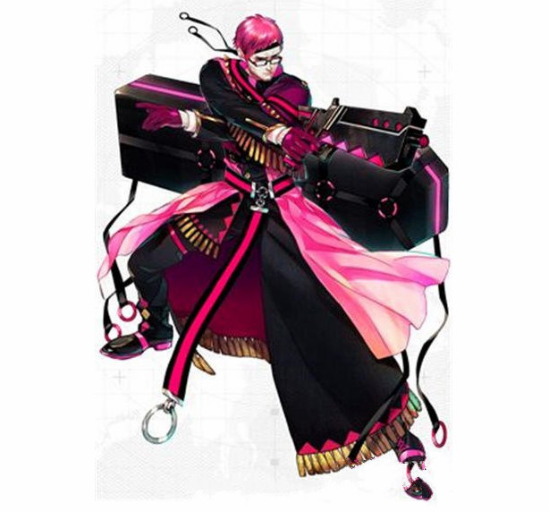 背上有棺材如此别样的的设计是在秋赤音接到委托前开发商就已经确定了的,为了协调这个设计,秋赤音还借助了神父服装的启发,飘逸的飘带设计配合酷炫紫的颜色,又有神秘感又和黑手党不太一样。在人物皮肤的选择上夏日肤色。