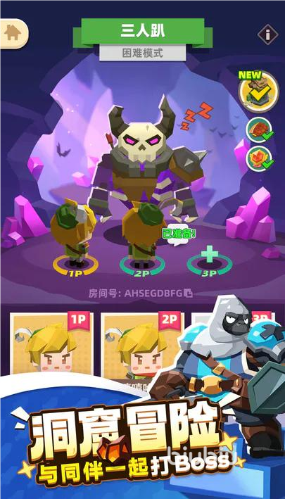 游戏设定多种普通、困难等不同挑战模式。勇士前往不同洞窟,在荒岛前进,寻找不同宝藏,躲避怪物的追击。每个洞窟的BOSS种类不同,技能攻击模式多样。玩家通过灵活位移、偷袭等,打出超强的攻击,击败BOSS们。玩家们拿走它的私房钱,让它们回到老巢中。