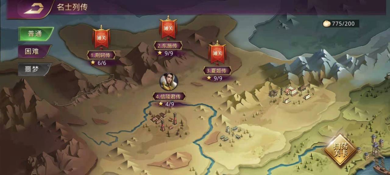 推图就是玩家挑战名士列传,名士列传分为普通难度,困难难度和噩梦难度三个级别,不同的难度都是相互独立的,也就是说各个难度有各自的进度。但是无论是哪个难度下的名士列传,挑战起来的方式都是一样的,这里把技巧给大家介绍一下。