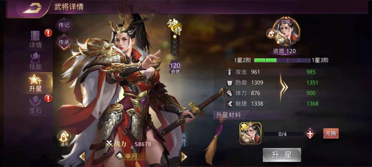 武将玩法中最重要的是武将品质,武将分为神将,名将和良将三个等级,其中只要神将才是值得我们去重点培养的,名将无论怎么提升,战斗力和神将都是要插上一大截的。而获得神将的主要渠道就是鱼塘钓鱼,多进行以及高级钓鱼,先把第一只队伍全部换成神将,这是我们第一步必须完成的。