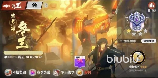 争王这个模式是游戏中一个重点玩法,它是限时开启的,大家在游戏中可以和自己的两位好友一起组队游戏,或者是匹配到的两位队友进行3v3战斗,系统会根据大家的等级和强度来进行匹配差不多强度的敌人来与大家作战,胜利之后可以获得大量奖励,并且还能提高大家在该玩法中的等级,等级越高赛季排名则会越高,每个赛季结束,还能获得一定的奖励。