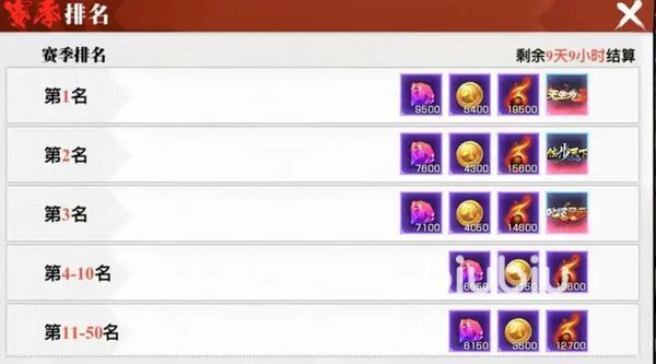 该玩法是分为不同赛季的,每个赛季基本上都会持续一个月的时间,大家只要在这个对应的赛季结束之前,只要达到一定等级就能得到段位达标的奖励啦,在这些奖励里面有很多的道具,只要达到对应段位之后这些奖励都能自行领取哦。另外若是排在前三甲的玩家,还能获得游戏称号,第一名为天生为王,第二名为独步天下,第三名为叱咤风云,这些称号不仅是大家实力强势的代表,更能在游戏对战中给角色带来不同的属性加成效果哦。