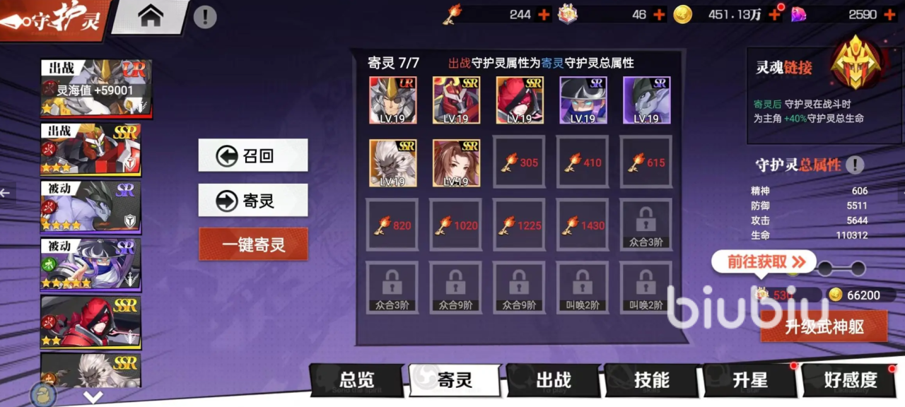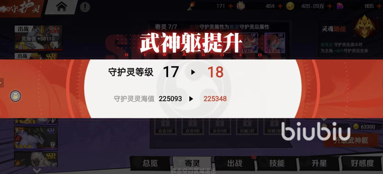 寄灵的质量则是由武神躯等级以及守护灵的战力有关,前者的升级需要消耗大量的武神之证,因此在寄灵选择的时候,战力越高的守护灵自然是优先出战的。