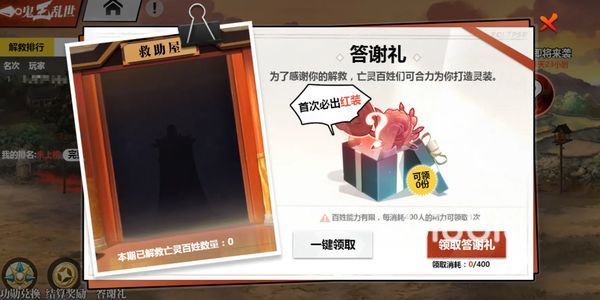 大家在挑战该玩法的时候,只要七杀鬼王就有机会获得一份亡灵百姓道具,点击使用该道具能够获得超多的答谢礼,而且大家在游戏中要是帮助自己的朋友一起去击杀鬼王的话,还能直接分到奖励的10%哦,不过这个助力奖励是有一定次数上限的,当大家在游戏中将该上限打到最高值之后,就不再能继续助力获得奖励了。