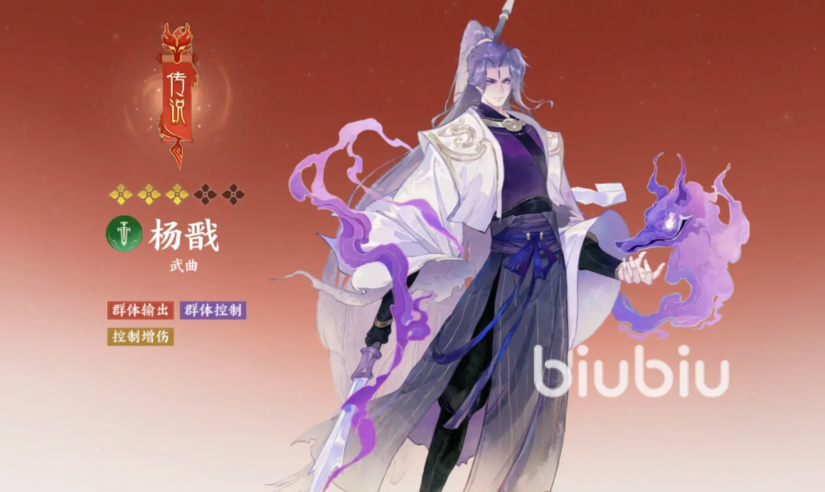 杨戬主打群体输出和控制,他的普攻会攻击单个目标,造成80%伤害,命中后有25%几率附加无法移动的眩晕效果,若成功施加自身提升10%行动值,他的回合技会攻击所有敌人造成60%伤害,有25%概率施加眩晕,并能直接得到20%行动值,他的能量技会攻击一名敌人,造成160%伤害,该次攻击会附加30%防御穿透,若攻击处于眩晕、睡眠和魅惑中的敌人穿透会增加到50%,成功击杀掉目标会重置该招式的冷却。
