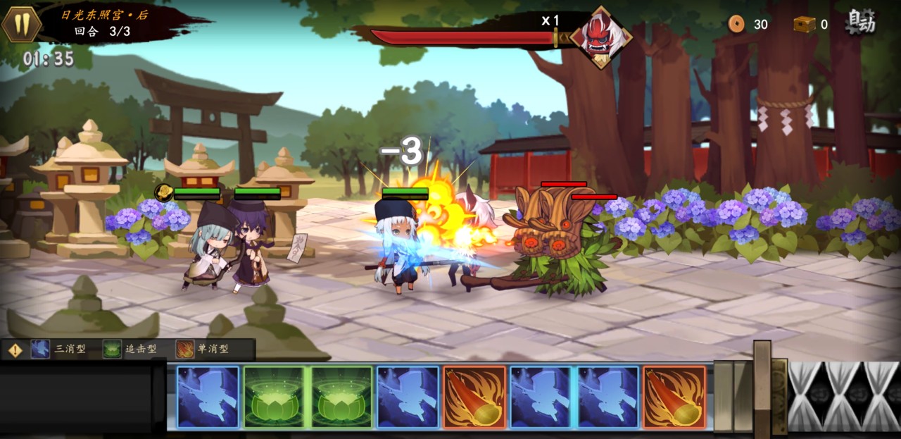 第二种阵容就是按照葵的种族来构建阵容,因为葵的技能可以对鬼族的全体成员产生增益效果,所以玩家可以把其余两名队友设置成鬼族武士,这样可以很好的发挥葵的技能效果。