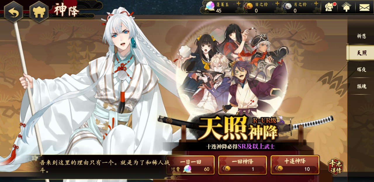 第二种途径是天照系统,玩家同样可以在这里抽到UR级和SSR级的葵,但是需要玩家多次愁绪才行。
