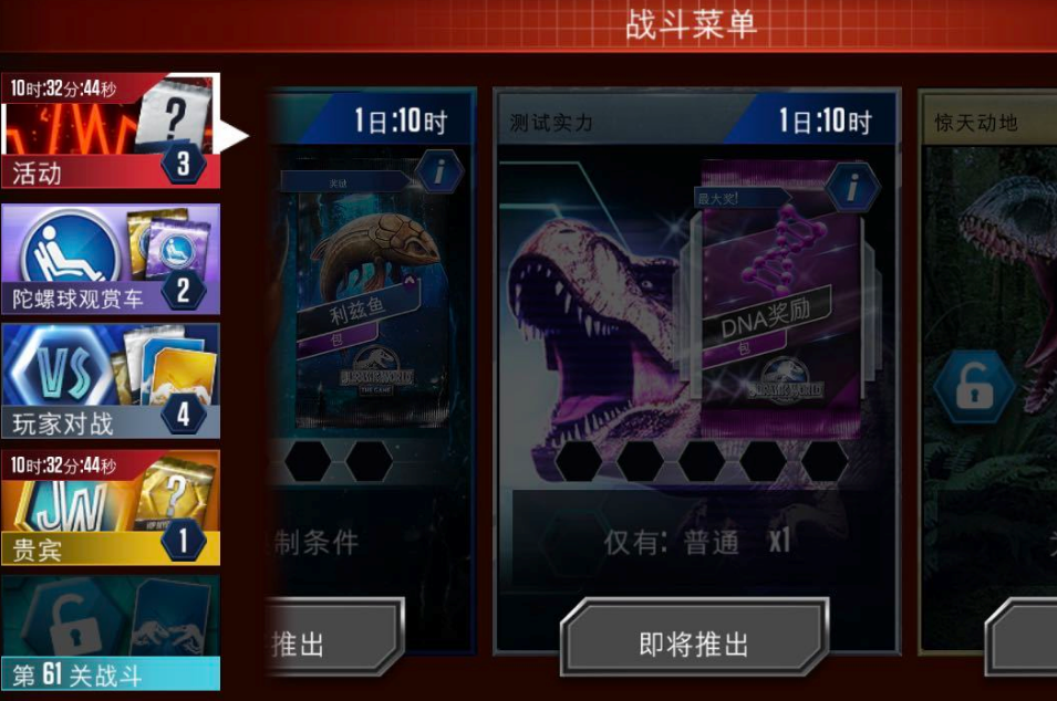 除了融合玩法之外,在目前的游戏中还有一个锦标赛的玩法可以获得二型的狂暴龙。在每周的星期三会开始报名,结束的时间为晚上的24点。在报名之后,周五会开启锦标赛的战斗,玩家需要在特定的时间做好战斗准备。锦标赛中的对手都是玩家在操作,所以对于恐龙的培养、阵容的搭配选择和打法都有很高的要求。