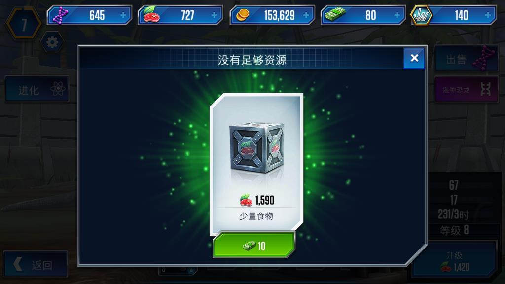 侏罗纪世界游戏混种恐龙怎么升级,升级的操作和收益介绍