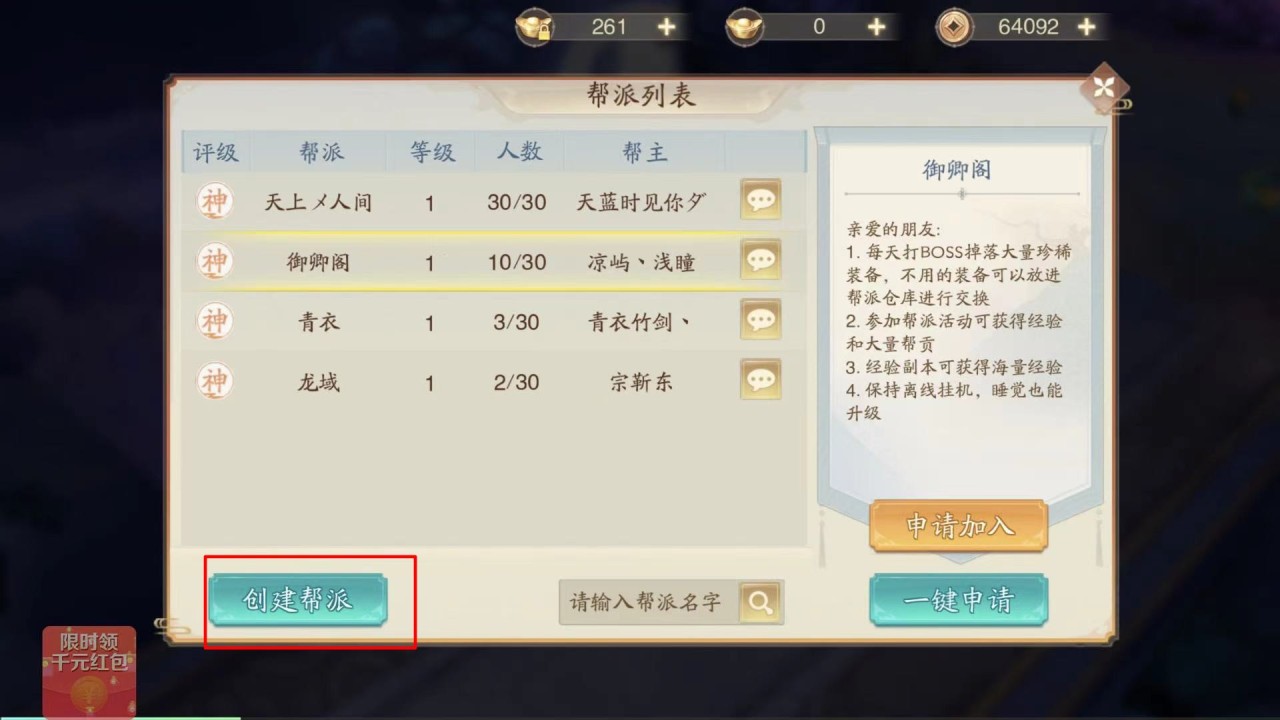 然后再点开它,就会出现和上面小编所说的创建帮派的窗口了。