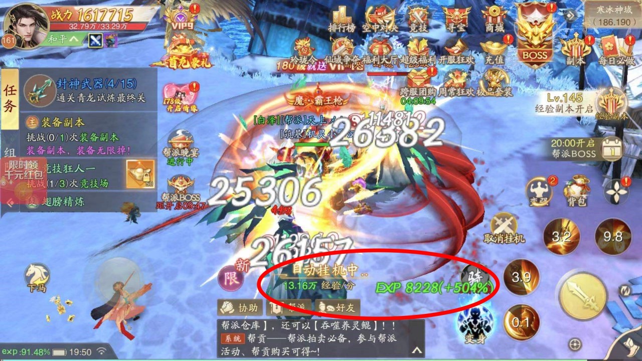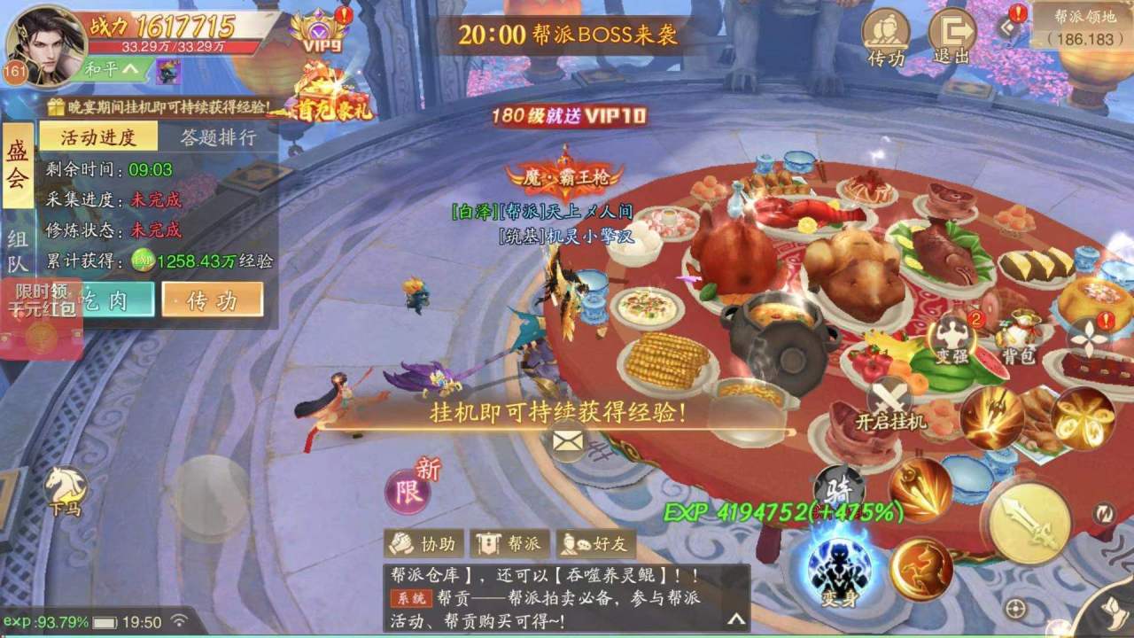 下图是帮派赴宴,赴宴后挂机也有经验。