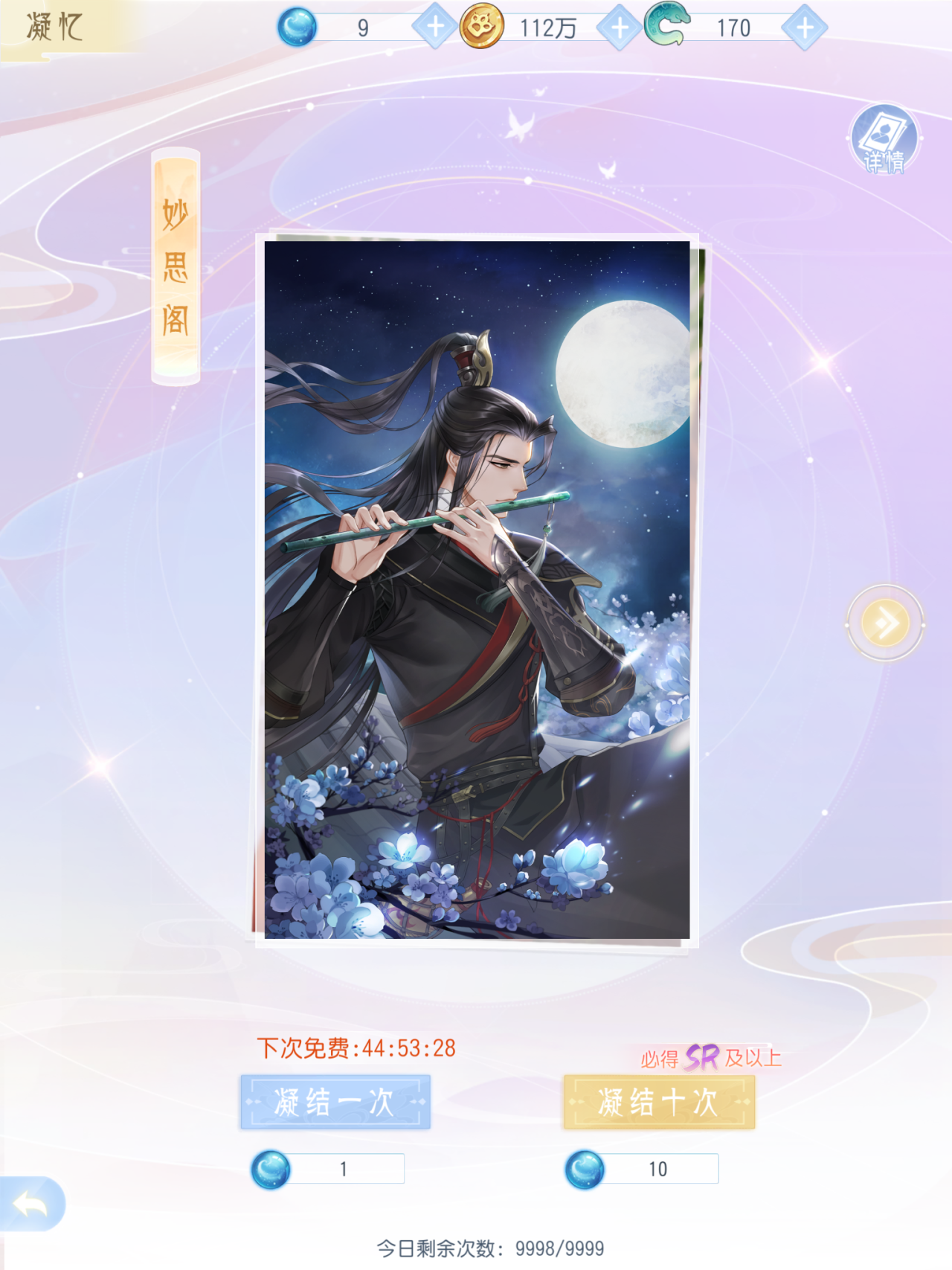 在妙思阁中每消耗一个蛟珠可以抽取一个刻印,每48小时可以免费抽取一次,进行一次十连抽必定获得sr及以上品级的刻印。