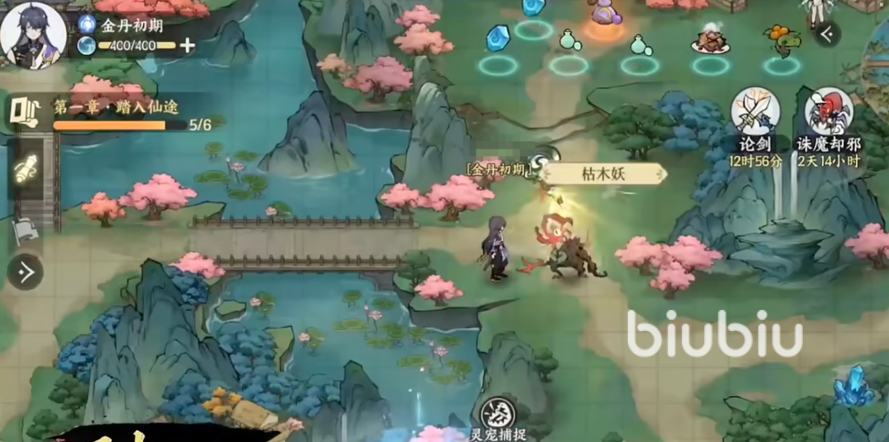 如果大家想要捕捉一只精怪的话,那么需要击败这只精怪。这时可以在地图中进行任意的探索,如果发现一只精怪的话就可以靠近开启战斗。不过大家的实力不足时就不建议攻打了,因为一旦阵亡的话,自己的经验值以及状态容易受损。