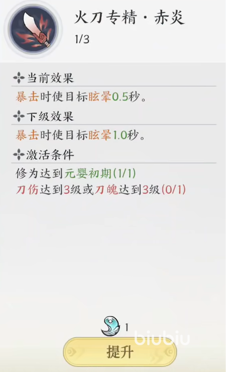 想要激活的话,需要刀魄或者刀伤达到三级,以及修为达到元婴初期。不过这并不代表其他分支不能学。如果大家玩的比较花,也可以全部学1级。火刀带来高频稳定的伤害,控制效果也好,所以可以直接拉满。