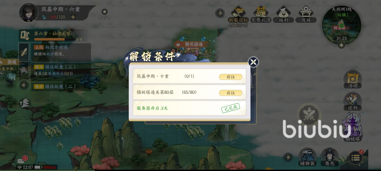 其实一刚开始的时候,大家的实力并不足以去刷副本。所以大家要完成相应的副本解锁条件之后,才能够去探索各种副本并开始攻略。首先你的修仙等级至少要达到筑基中期10层,另外还要通关镇妖塔80层,然后服务器也要开启三天之后才能解锁。