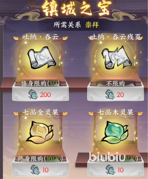 另外在这购买物品的话,需要与老板建立起良好的好感度,刚开始时是冷淡,但是依旧可以购买这些物品。不过要是想要购买镇店之宝的话,那就需要建立起崇拜的关系才行了。建立关系很简单,只需要频繁购买即可,之后就能在这买到各种七品灵丹。
