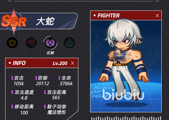 从整体上看,大蛇各项能力在《最强斗王》中是不可小视的。无论是单挑还是团队战,他都有很强的输出以及生存能力,给玩家提供最极致的战斗感受。因此,值得玩家们为他投入大量的资源去抽、培养。特别是大蛇的限定概率UP池开启的时候,玩家抽到它的概率会更高,这时候如果有条件的话,绝对不能错过。