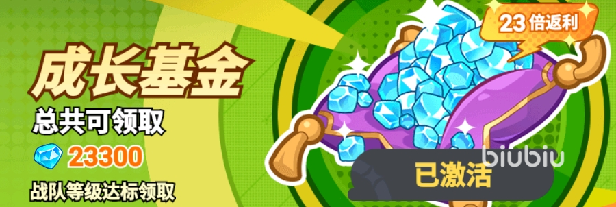 成长基金88元:战队等级达标后可领取奖励,共计能获得23300【钻石】。