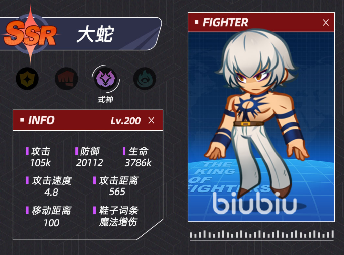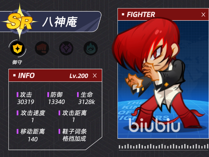 八神庵是新手玩家最容易获得的核心英雄之一,只要完成相应的任务就可以获得,但是因为其强度较低,所以经常被低估。具有独特的双形态机制,在释放必杀技之后会进入暴走状态,形态的转换使他具有很强的战术灵活性。进入暴走状态之后,普攻变为远程,近战爆发和远程消耗并存,使他在对付各种敌人的时候都游刃有余。技能特效炫酷、伤害不低,普攻变远程之后,在躲避敌人重要技能的时候仍然可以维持输出节奏。