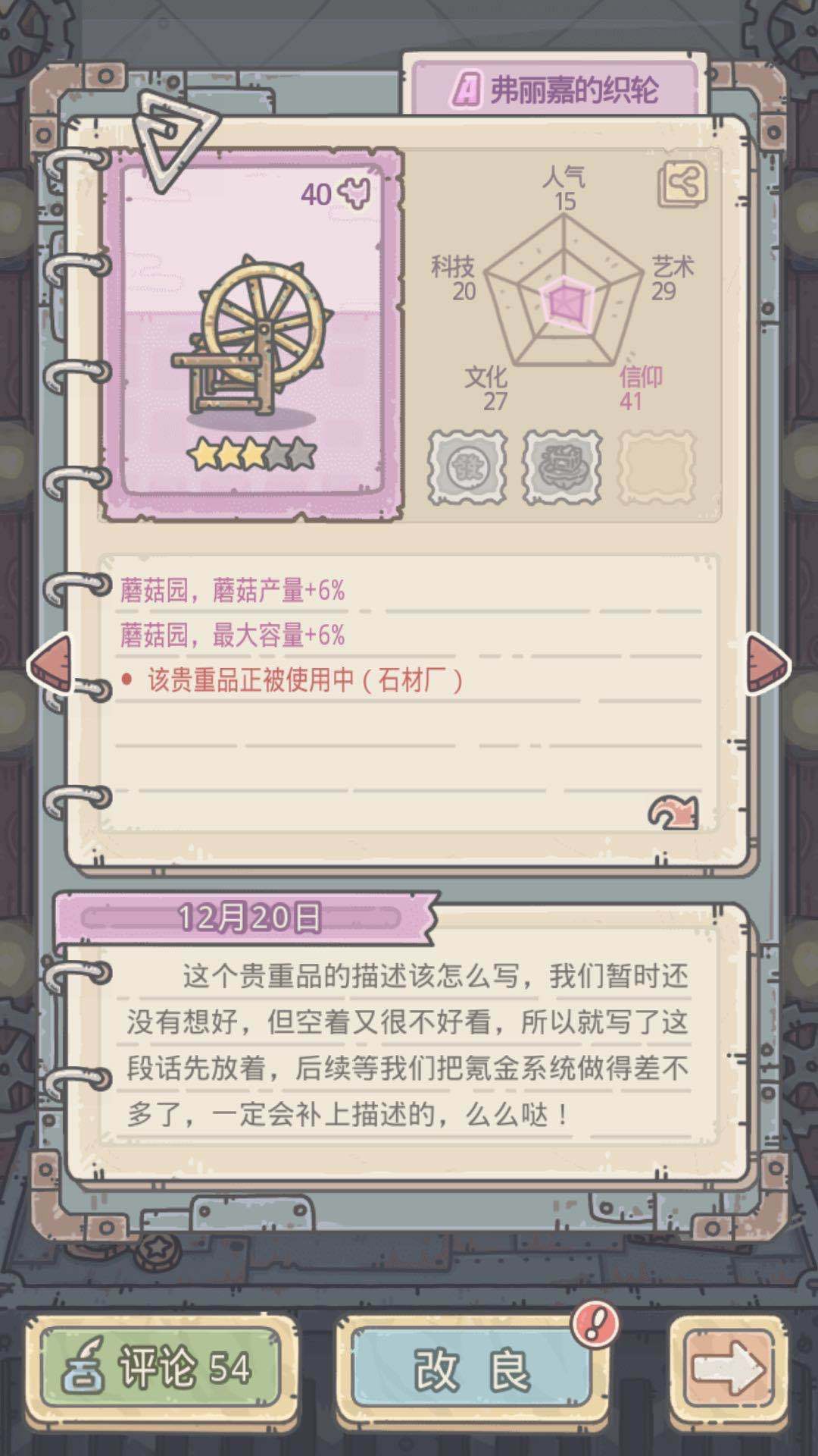增加资源池容量的贵重物品:本作游戏资源池的东西保存时间不会很长,基本几个小时就存满了,当我们睡觉的时候剩下的时间就利用不到,因此提升容量相当于节约时间。