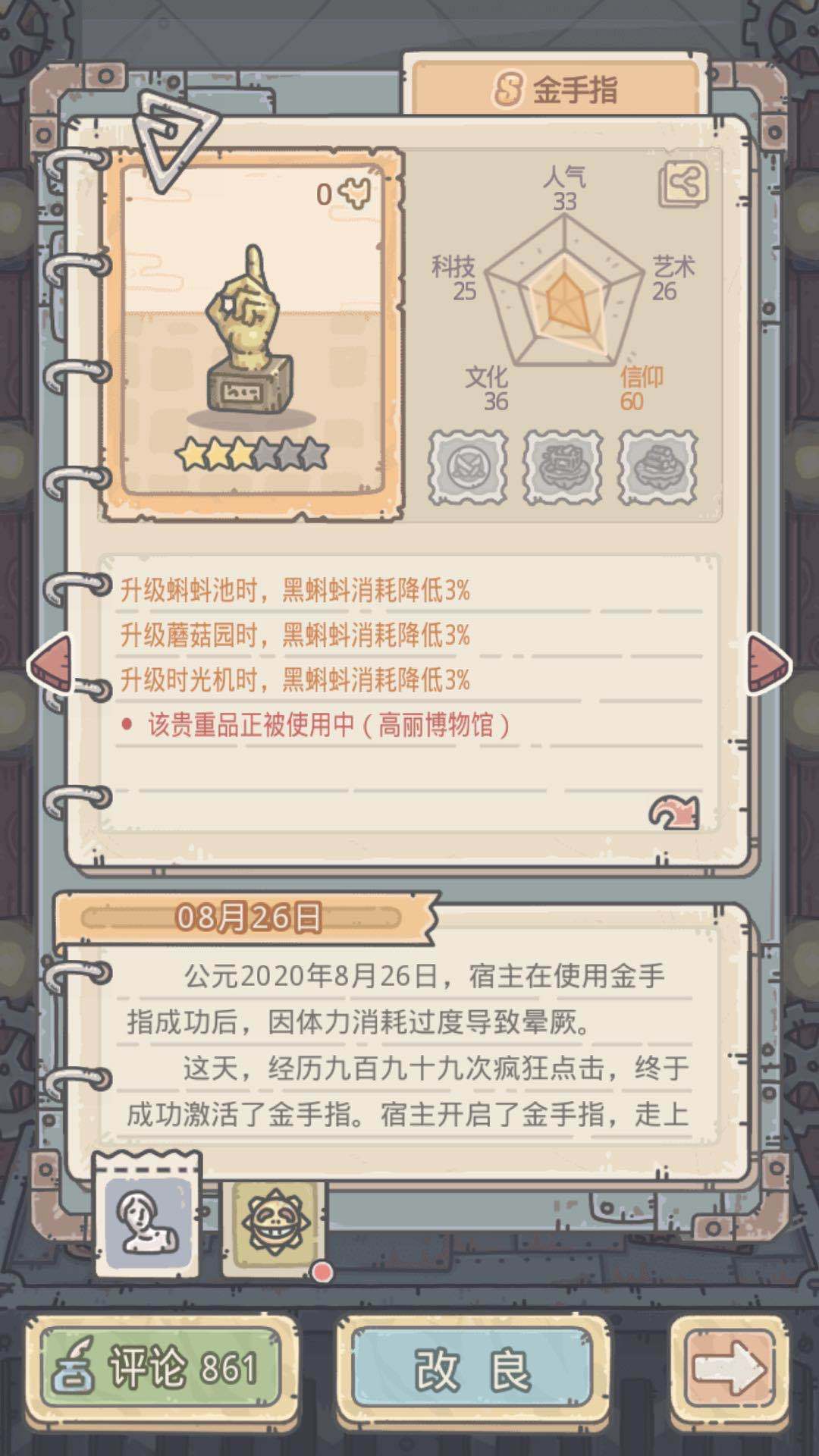减少玩家投入的贵重物品:比如减少升级蝌蚪池需要的木材,减少某种资源投入的都是可以升级的。当我们的资源池到达10级之后会发现各种设施都很难升级,特别是黑蝌蚪真的非常稀缺,解锁一个装备栏就需要30万的黑蝌蚪,这个游戏怎么玩嘛?(反之可以增加资源收入的也要升级)