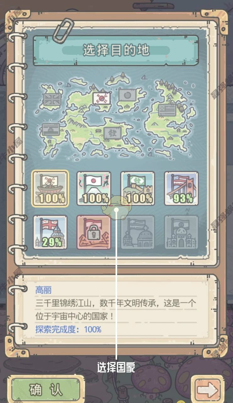 游戏一共有8个国家,目前开放了5个,包括高丽、扶桑、华夏、米国、英伦),游戏一开局解锁高丽,每消灭1个国家的最终使者,便可启动探索下面一个国家。