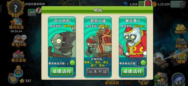首先挑战模式一共有三种模式,分别是巨人危机、邪恶入侵、暴走雪人。它们出现的场景不同,并且还会跟着难度的变化而发生变化。在游戏里面出现的僵尸一个比一个变态,一个比一个难对付。因此这几种模式的难度是依次递增的。