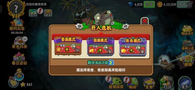 尽管挑战模式比较烦人,但如果玩家没足够的植物贮备,建议大家还是不要轻易挑战,不过普通难度应该没什么问题。