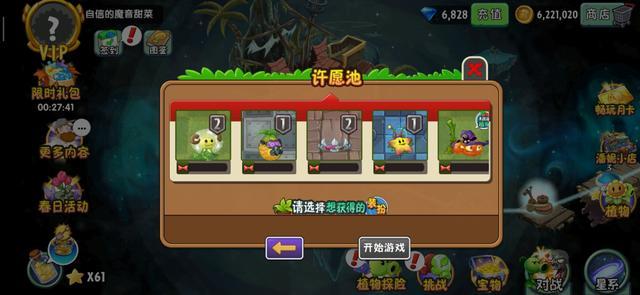 每种挑战模式都有几种难度,选择想要挑战的难度,然后进入界面,选择你想要的植物,在游戏里面能够获取这种植物的碎片,固然这是前两个模式,暴走雪人获取的是植物装扮,但是这不是一种普通的装扮,而是能为植物的大招提供特效的装扮,例如弹簧豆的套装能让它的大招带有晕眩能力。