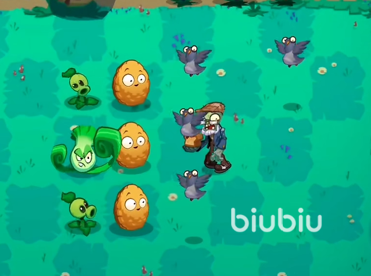 一开始首先老样子去种植向日葵来进行阳光的收集。玩家们最好将向日葵都种在最后一排。接下来等阳光收集到一定的程度便需要在第一排的中间或者是靠前的地方种下一个菜问。因为很快便会有敌人会从第一行过来。记得在菜问的前面放置一个坚果,因为在僵尸之后很快便会有鸽子前来,没有坚果阻拦的话是很难对付的。接下来在所有没有坚果的路上前面放置坚果。之后陆陆续续会有不少鸽子出现。我们只要守住了这两波的话,后面只需要不断的增加植物便可以顺利通过关卡了。