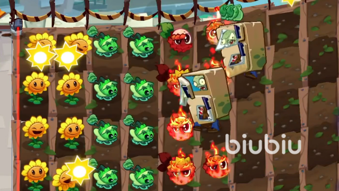 当大家按照上方流程去做之后,虽然前期可以先消灭几个冰箱僵尸。但是随着僵尸数量越来越多之后,就可以放一些旋风薄荷,之后就可以成功通关。到了第二关之后就会出现荔枝以及怪盗小鬼僵尸,它会偷走非火系的植物,所以建议各位在前排放置一些火系植物。