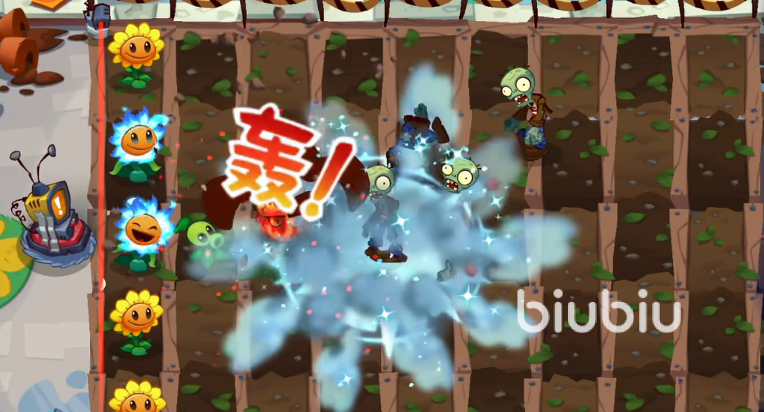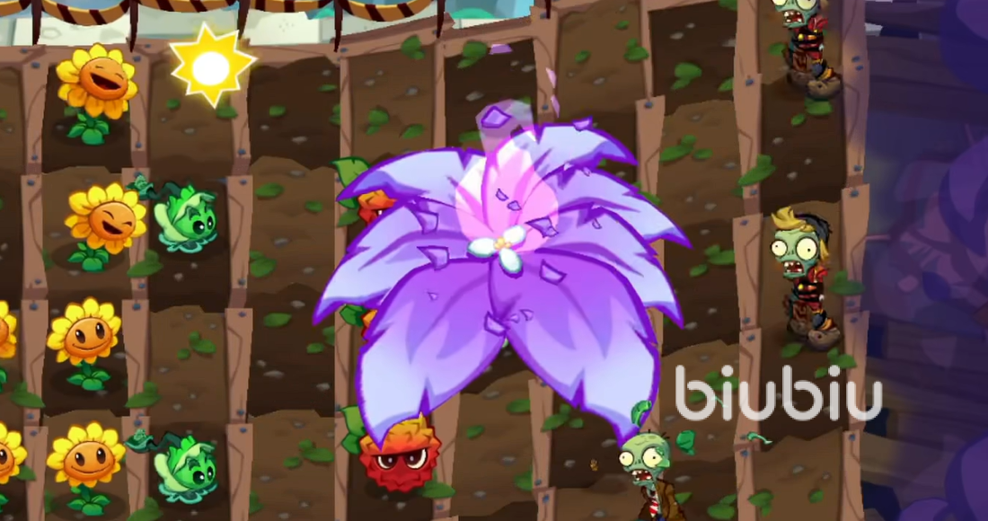 到了城区这个关卡之后就可以解锁岩浆玉露,这个植物不仅具有火系伤害,甚至可以与其他植物一起组合进化成为火系植物。当大家在一排中放置一个岩浆玉露之后,就可以成功让这一排的向日葵变成熔岩向日葵,接着还可以变成蓝色火焰,让熔岩荔枝也变成蓝火。