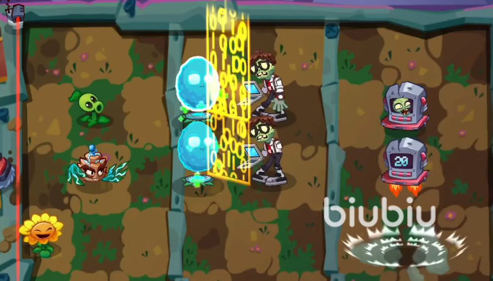 另外还有电流供给加强的效果,只要植物互相串联起来的话,就能获得巨大的攻速加成,并且可以让子弹分裂,以此造成更高的伤害。然后将带有电磁发射装置的地方,都放上一些电系植物,这样就可以保证其他植物不被受到额外的伤害。