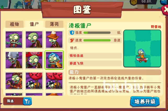 它的速度非常的迅猛,但是强度和生命值都比较低,十分脆皮。一直认为自己是个天生的飞行员,一般都是被巨人僵尸扔出去的那个,整体形象比较小巧。