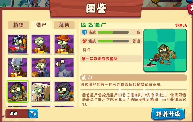 它浑身好似穿着护甲,同时手中还拿着割草机,通过割草机第一次攻击,能摧毁任何植物。