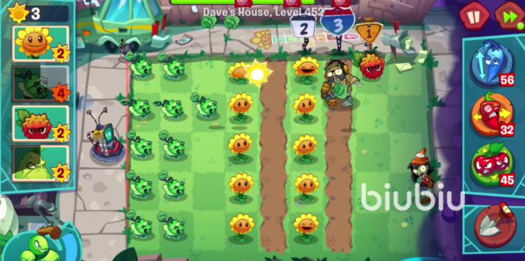 在玩法方面,《植物大战僵尸3》保留了系列核心塔防策略,同时加入了元素融合机制和多样化植物技能。每种植物都带有特定元素,玩家可以将不同元素的植物进行融合,触发独特效果,从而提升攻击力或提供额外辅助能力。关卡中,僵尸类型和属性各异,玩家在布阵时需要考虑元素克制关系,合理安排进攻型植物和防御型植物的位置与技能释放时机。日常任务、活动和抽卡系统能够帮助玩家获得新植物并进行培养,强化阵容实力。