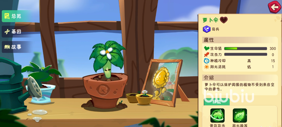 它能投掷剧毒的花朵攻击僵尸,让僵尸受到持续叠加的中毒效果。普攻就是通过花朵攻击僵尸,攻击附带毒碱,一旦击中会受到持续伤害,最高4层,每层附加25的伤害。小技能可以通过投掷毒瓶对3个目标进行攻击,敌人不仅受到100%伤害,还会被叠加一层“毒碱”。