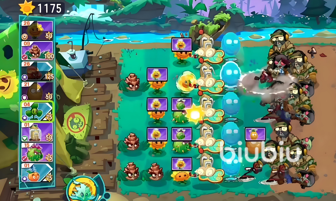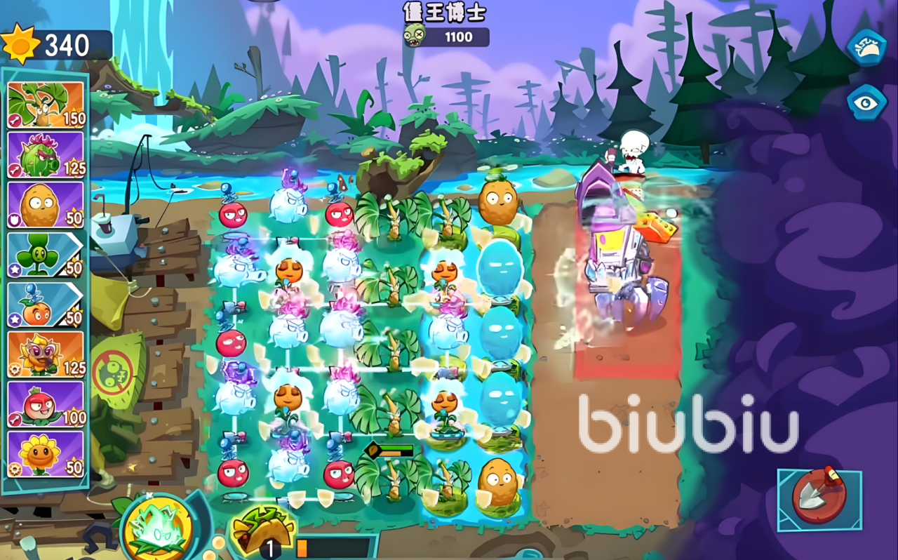 到了最后阶段的时候,boss就会直接召唤巨型的boss,而巨型的boss会进行全屏攻击。此时玩家所需要做的就是上樱桃炸弹以及闪电的芦苇群,要是玩家此时还搭配一个能量豆,那么就能够激活大招,就可以直接将大boss给打败。其实玩家将植物搭配的时候也需要讲究阵容,在核心输出方面,直接选择豌豆流量果+激光豆,辅助控制方面选择冰冻生菜跟眩晕蘑菇。