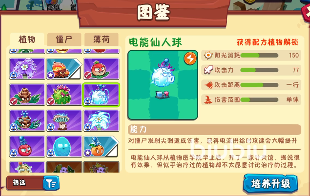 对单体僵尸发射尖刺造成损伤,如果能获得电流供给,攻速会得到大幅度的提升,它的外形看起来就像一个鼓鼓囊囊的“河豚”。