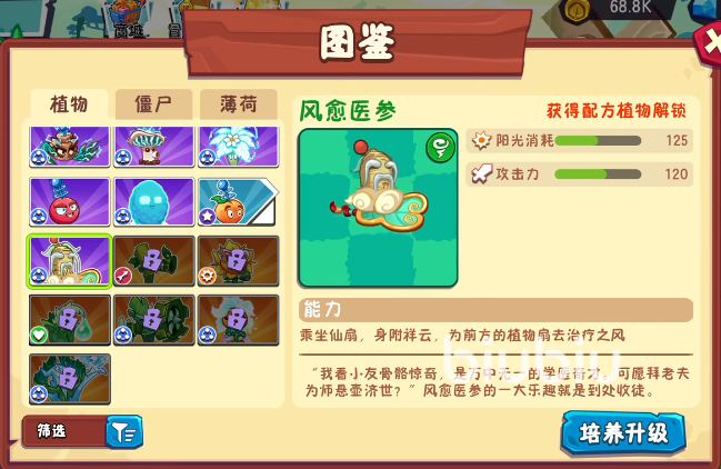 拥有和人参类似的能力,主要通过扇风的方式给前方的植物带去治疗效果,恢复植物一定的生命值,让已经种植的植物能更加持久的战斗。