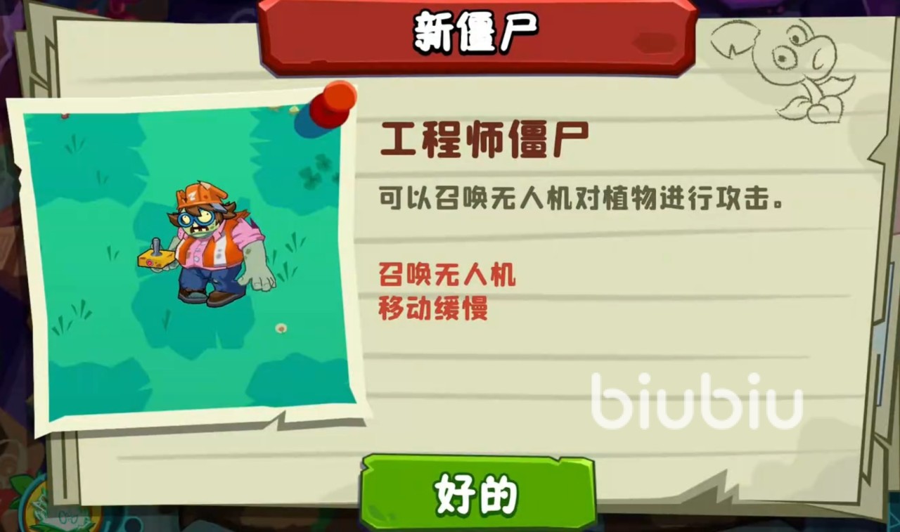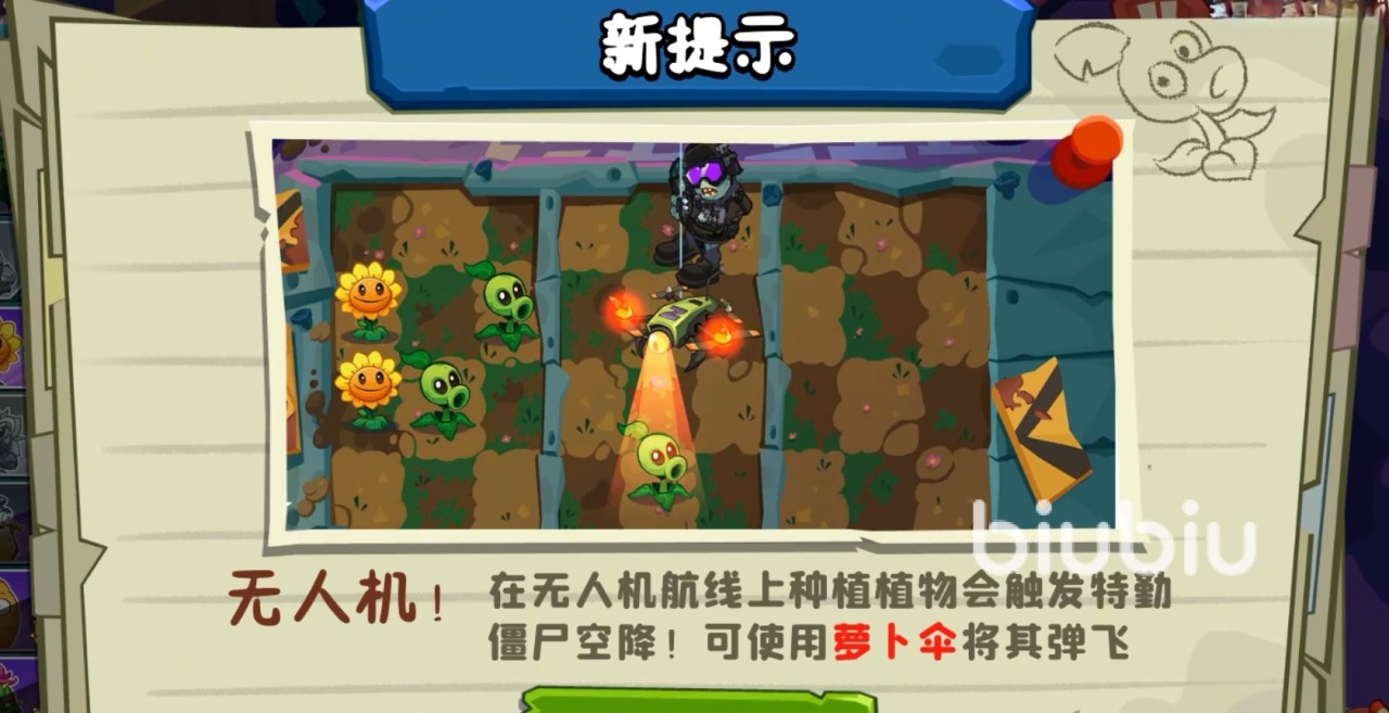 无人机一般是由工程师僵尸召唤出来的,强度略低,如果是自行飞来的无人机强度会更高一些,不过,无论是哪种方式出来的无人机,其特点基本上都是飞行速度快、会消灭路径上的植物,这使得它们对防御阵容的布局构成显著威胁,所以在应对这些无人机时可以选择攻击力高、攻速强的植物,不要太在意防御。