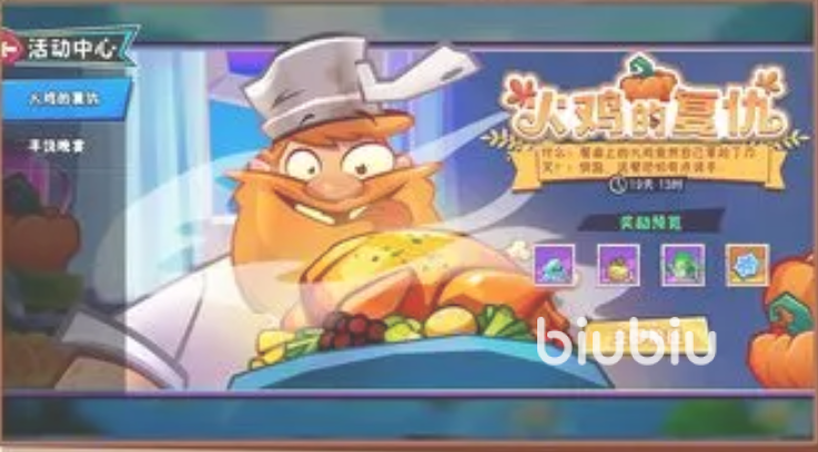 全新转盘活动“丰饶晚宴”,可以使用新增的火鸡币道具抽奖,主要的奖励有菜问,菜问的装扮,钻石等。当然还有全新僵尸到来,钢铁炙烤者是个BOSS僵尸,看起来是重装机械火鸡,可冲锋,喷火,从尾部发射火鸡蛋;还有机械火鸡小鬼骑士,能够飞跃低矮的植物防线。